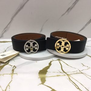 Tory Burch Women’s Miller Reversible Belt in Black Gold