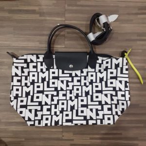 Long Champ Neo LGP Medium Top Handle White Black