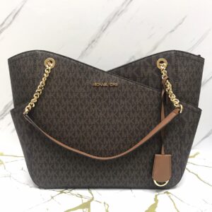 Michael Kors Jet Set Criscros Travel Chain Tote in Signature Brown