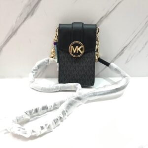Michael Kors Carmen Phone Crossbody in Signature Black with Gold Hardware
