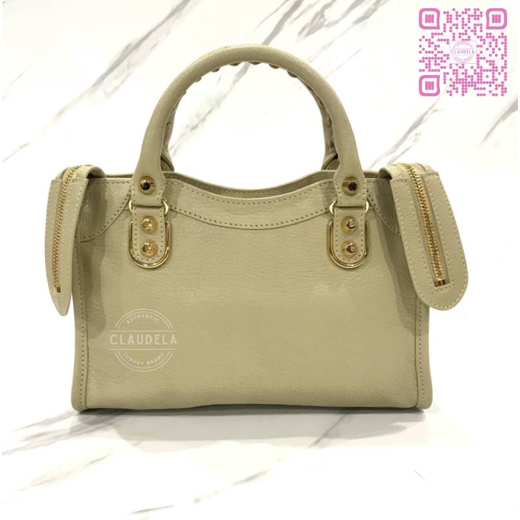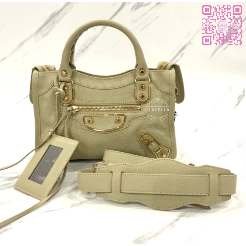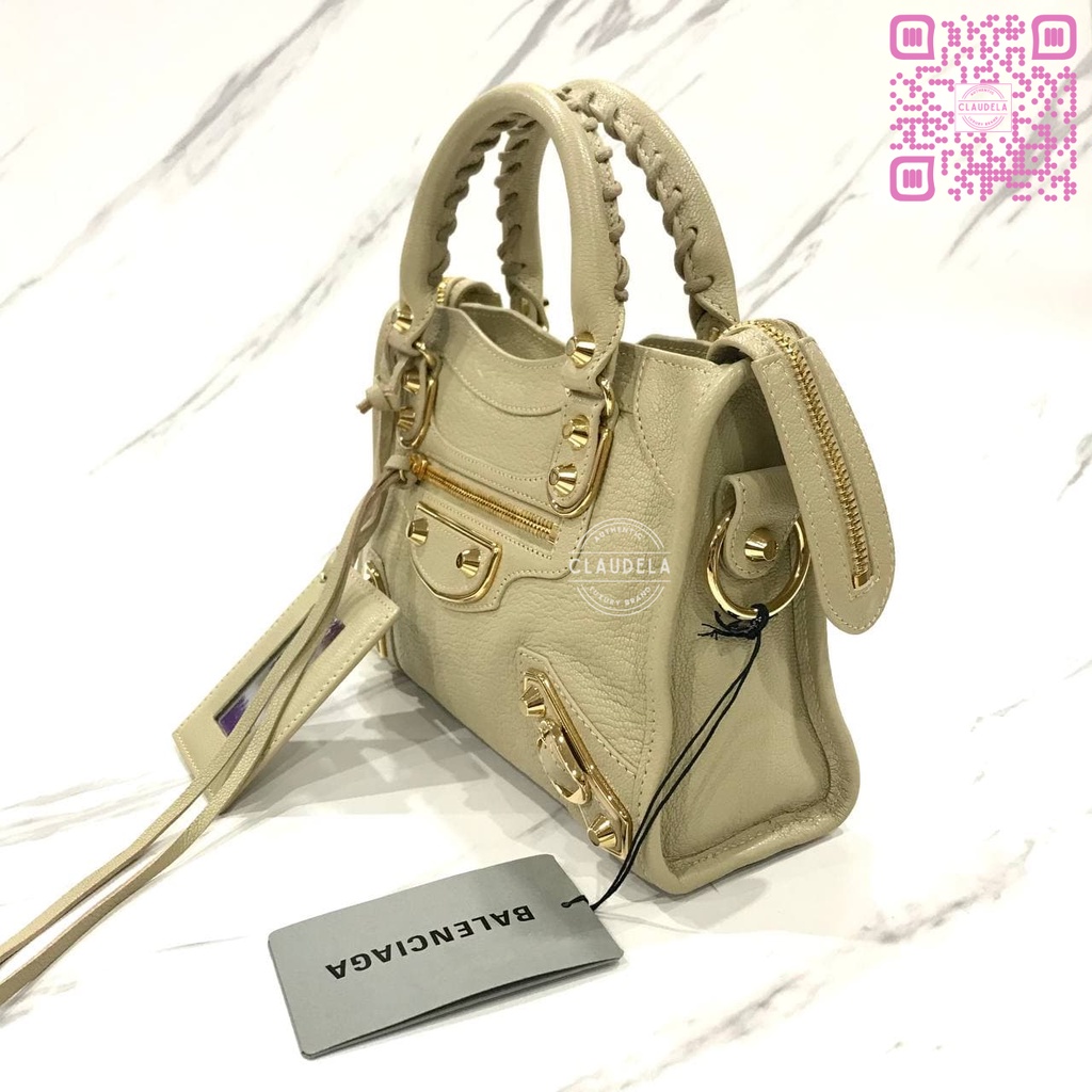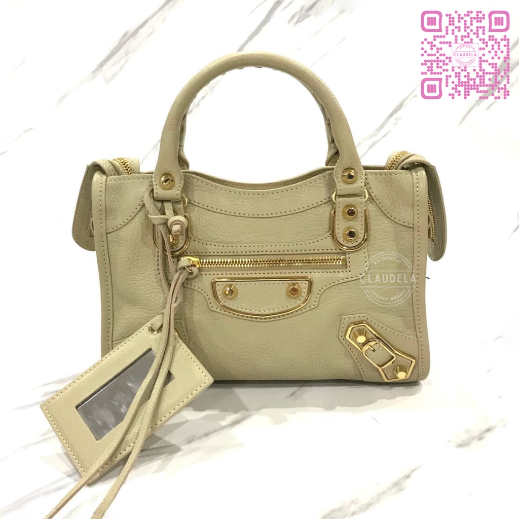 BALENCIAGA Metallic Edge Mini City in Limestone with Gold Hardware (GHW)