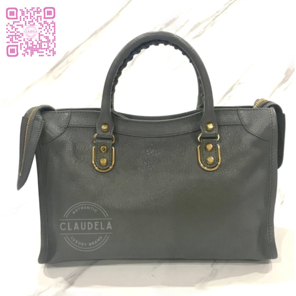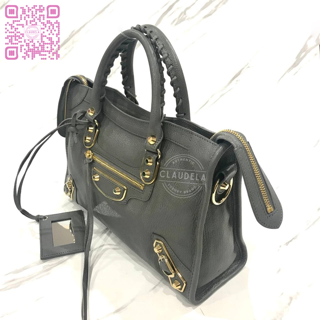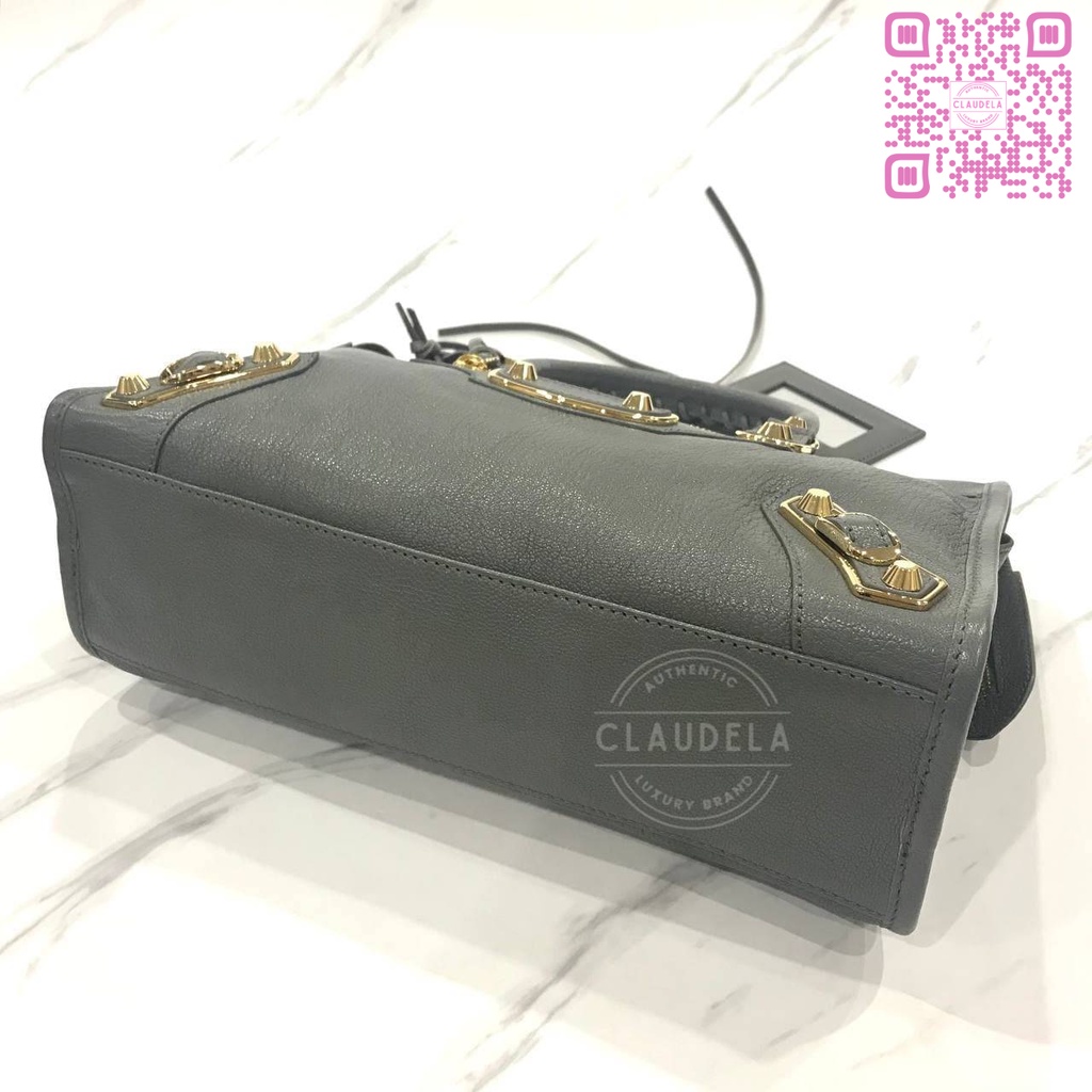 BALENCIAGA Metallic Edge Small City in Medium Grey with Gold Hardware (GHW)
