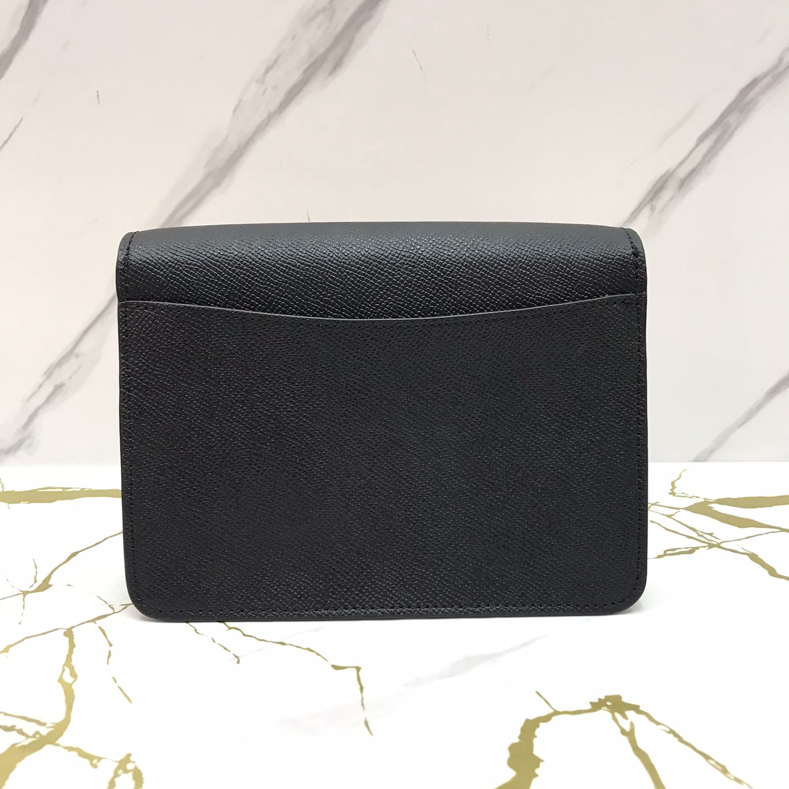 Material: Made from crossgrain leather, known for its lightly textured surface, durability, and resistance to scratches. The black leather finish adds a timeless and elegant appeal