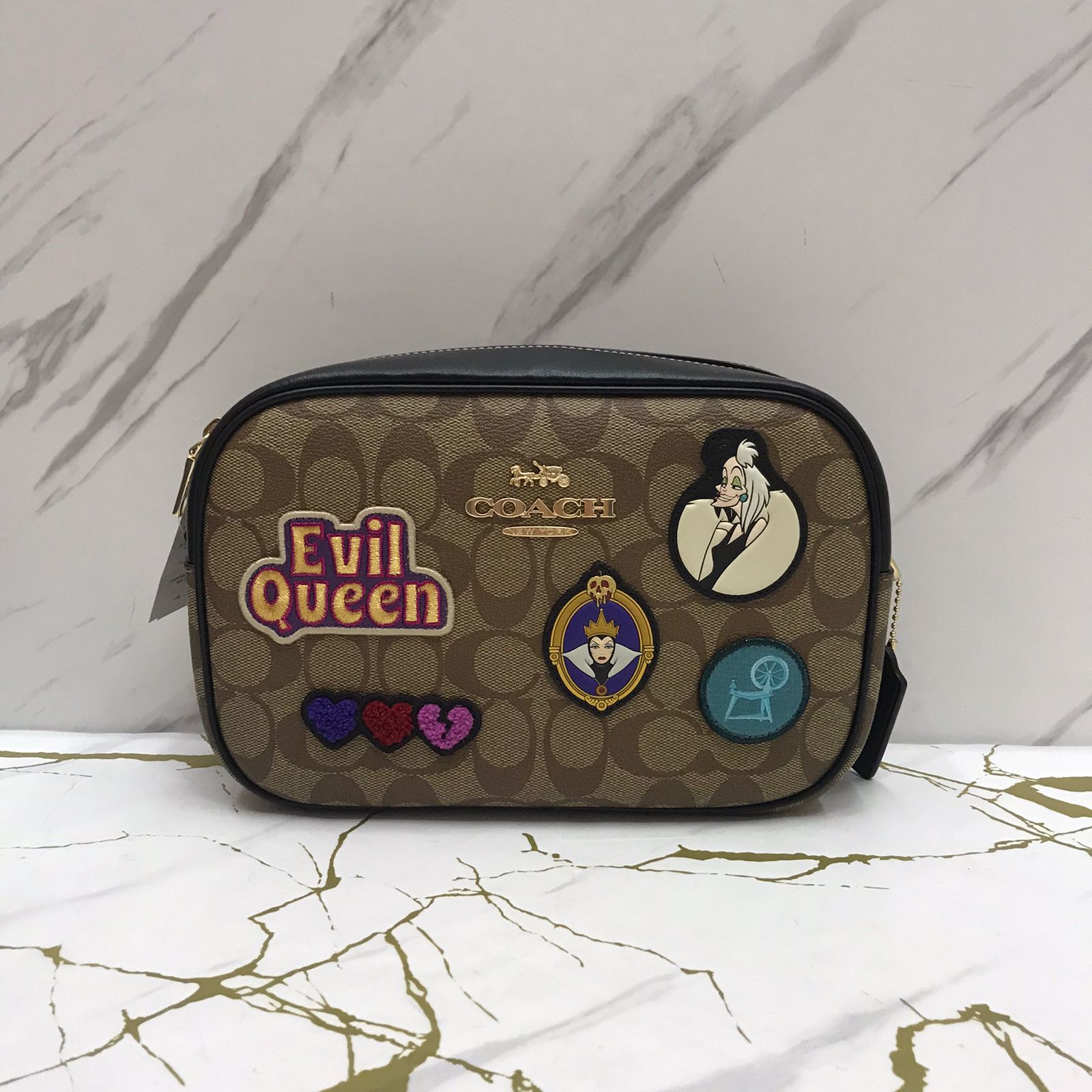 Coach X Disney Jamie Camera Bag Signature Khaki Villain Patches