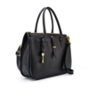 Top handle can be folded down to the sides when bag is worn as a crossbody