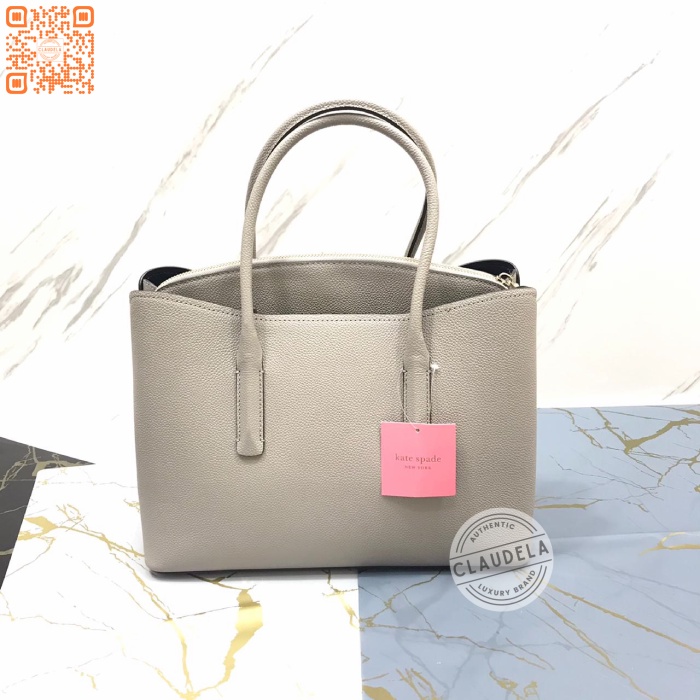 The Kate Spade Margaux Large Satchel in True Taupe: A sophisticated and spacious satchel with a timeless design, perfect for every day. Crafted from luxe leather, it combines elegance with practicality, making it an essential addition to your wardrobe.