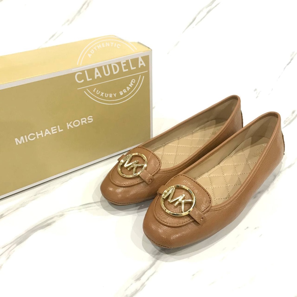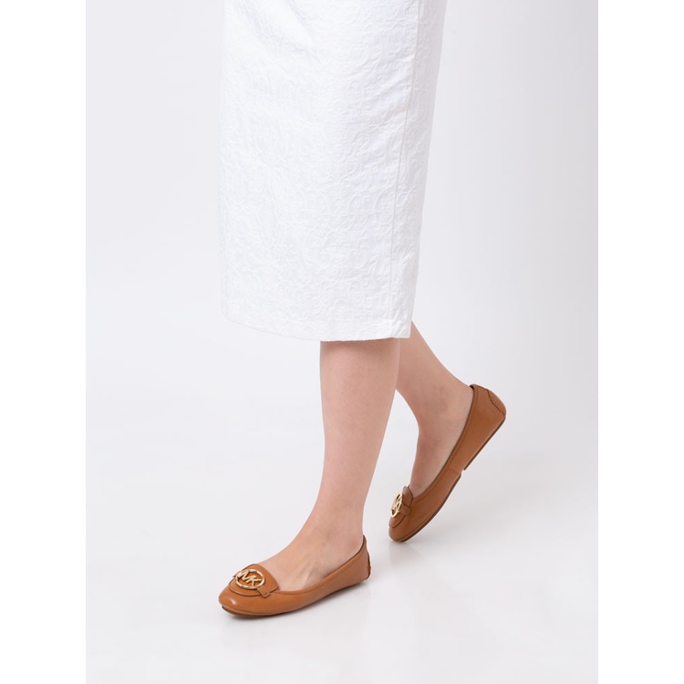 MICHAEL KORS Lillie Flat Shoes in Luggage Moccasin Leather with Gold Logo Limited Edition