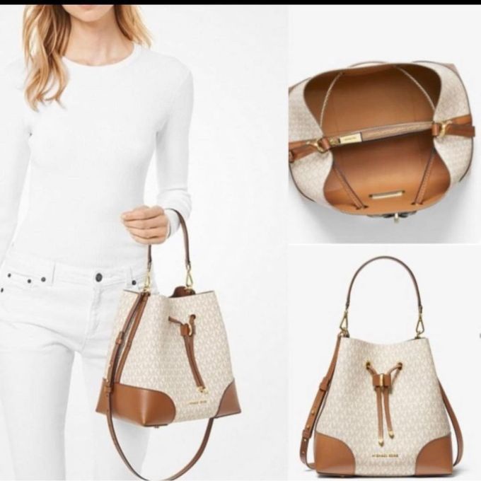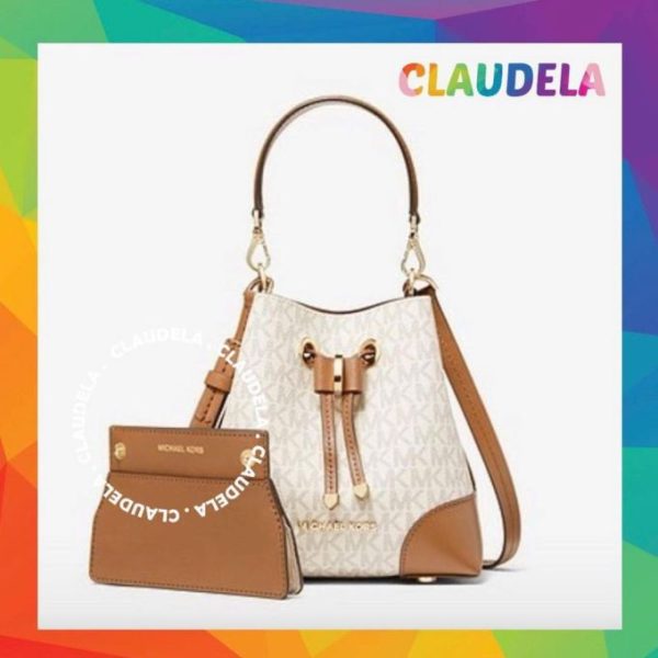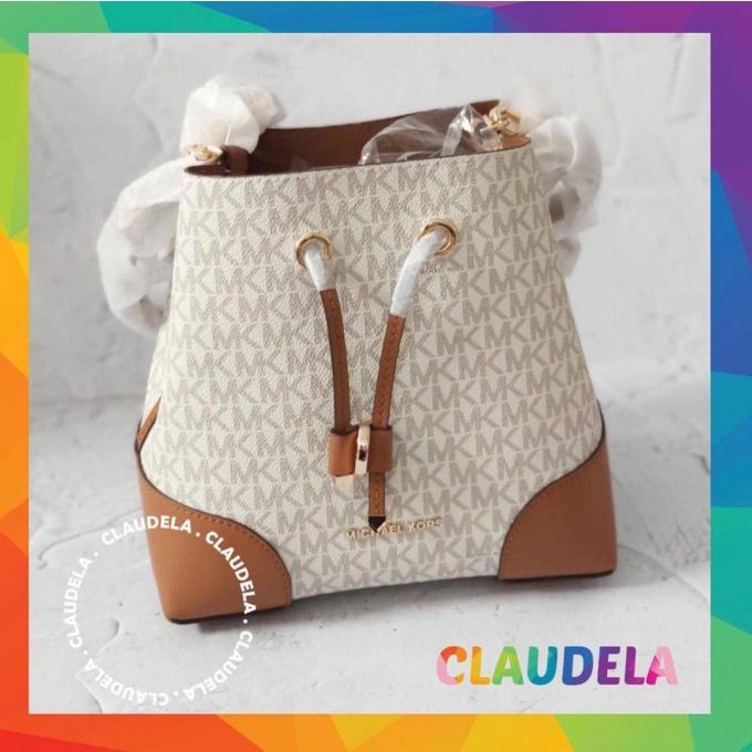 MICHAEL KORS Mercer Gallery Bucket Small in Signature Vanilla / Acorn