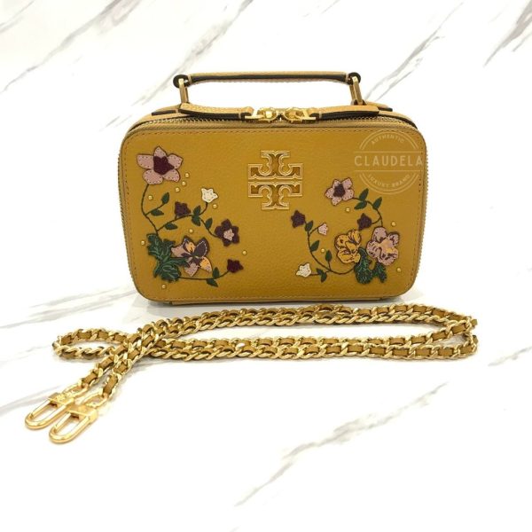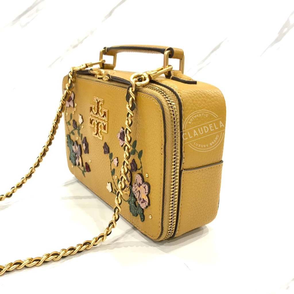 TORY BURCH Britten Applique Small Top Handle Case in Golden Curry/Yellow
