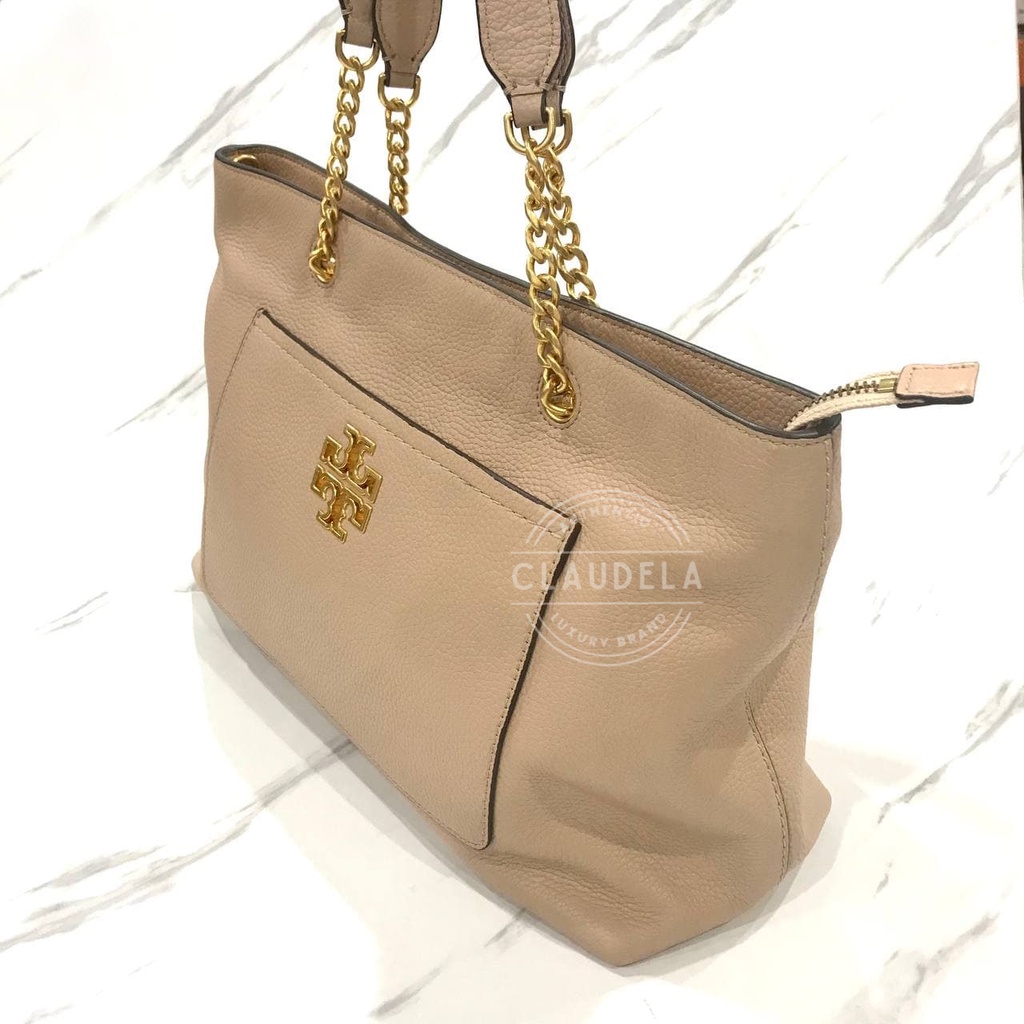 Tory Burch Britten Satchel Front Pocket in Light Oak/Nude Rp5.200.000