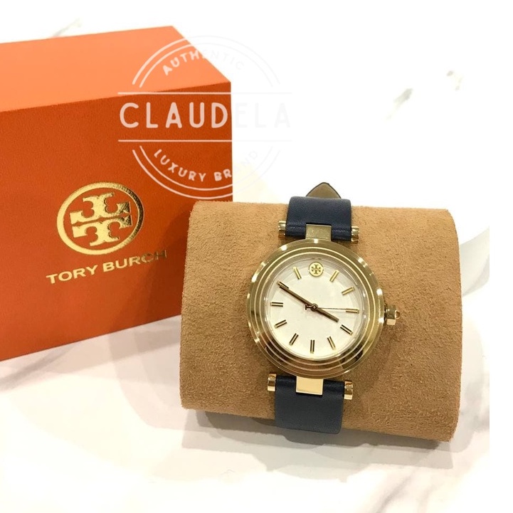 TORY BURCH Women’s Classic T Three-Hand Navy Leather Watch (TBW9001)